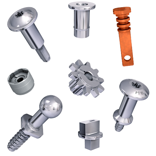 A variedade de aplicações possíveis para peças conformadas a frio de aço ou alumínio é praticamente ilimitada. Os produtos EJOFORM® fabricados pela EJOT são sempre inovadores e soluções de engenharia de fixação e design específicas para o cliente. Eles atendem a uma ampla gama de requisitos, por exemplo, como suporte, parafuso batente, luva espaçadora, elemento de ajuste ou componente relevante para segurança em sistemas de freio. Os produtos individuais são fabricados em um processo de conformação a frio de várias etapas. Com esta tecnologia, uma seção de arame é formada em uma complexa peça de conformação a frio em várias etapas de conformação.